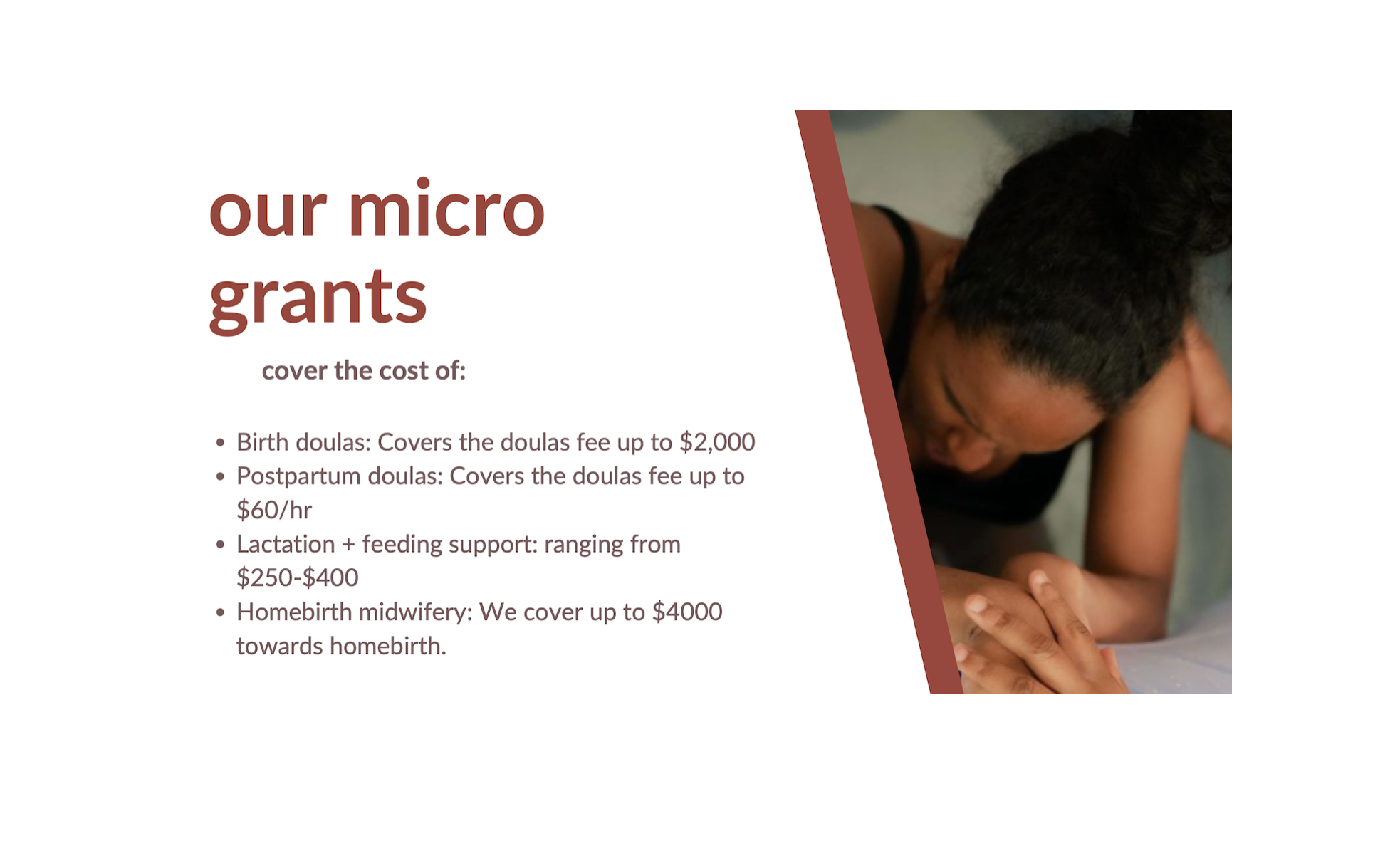 11% of all purchases go to The Bridge Community Foundation to support safer births through access to Doula and Midwife care.